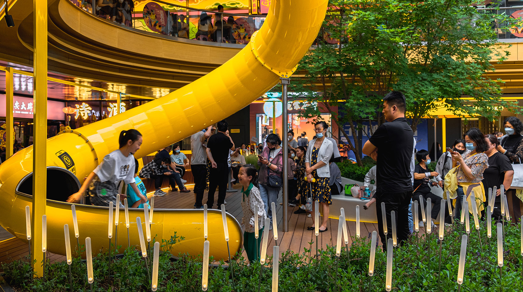 Pre-fabricated play structures in commercial patios