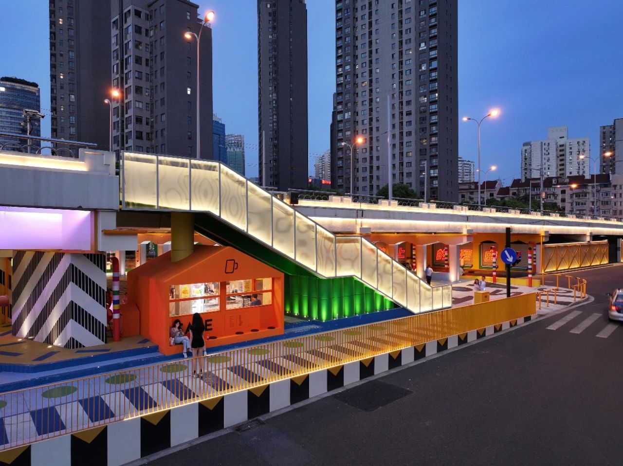 A creatively revitalized underpass plaza