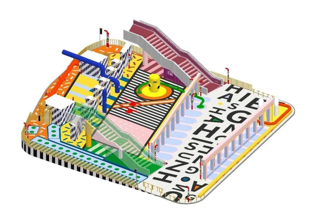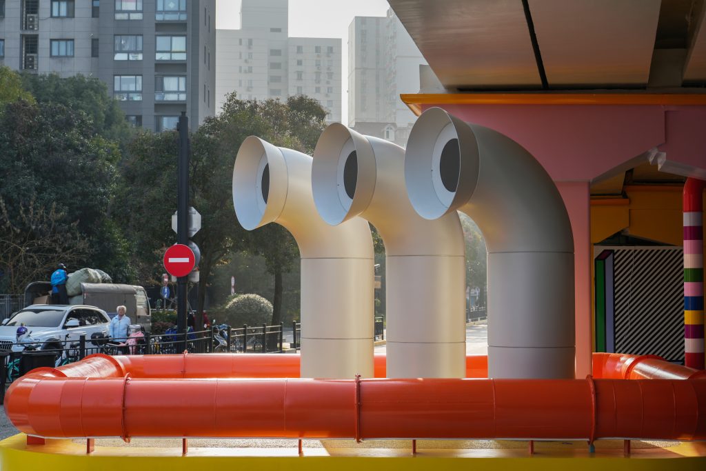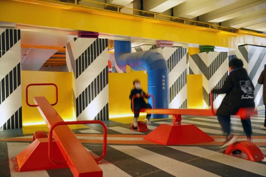 Taking inspiration from a yellow municipal gas pipe that remained on-site, the design combined “pipes” and “colors” as the inspiration. The former represents the industrial history along the Suzhou River and even in modern Shanghai. At the same time, the latter is the best choice to change the shady and gloomy atmosphere of the space under the bridge.