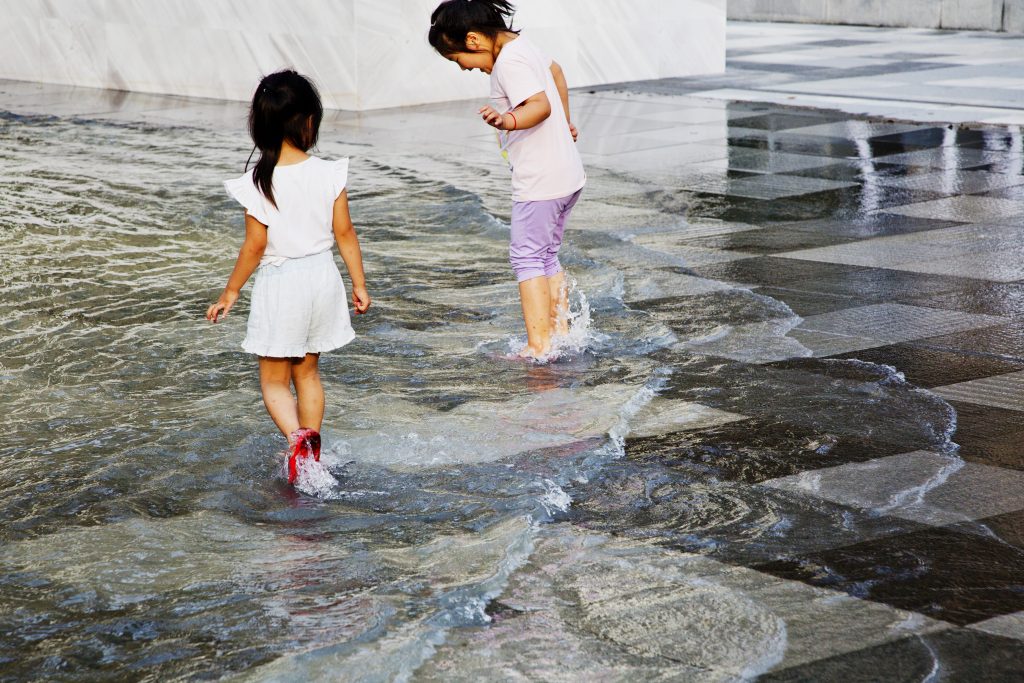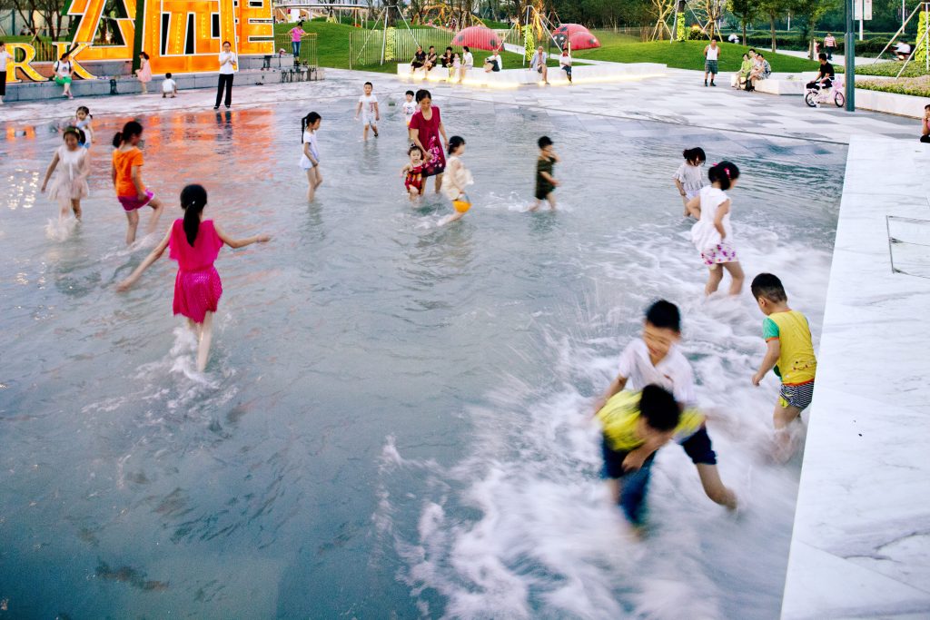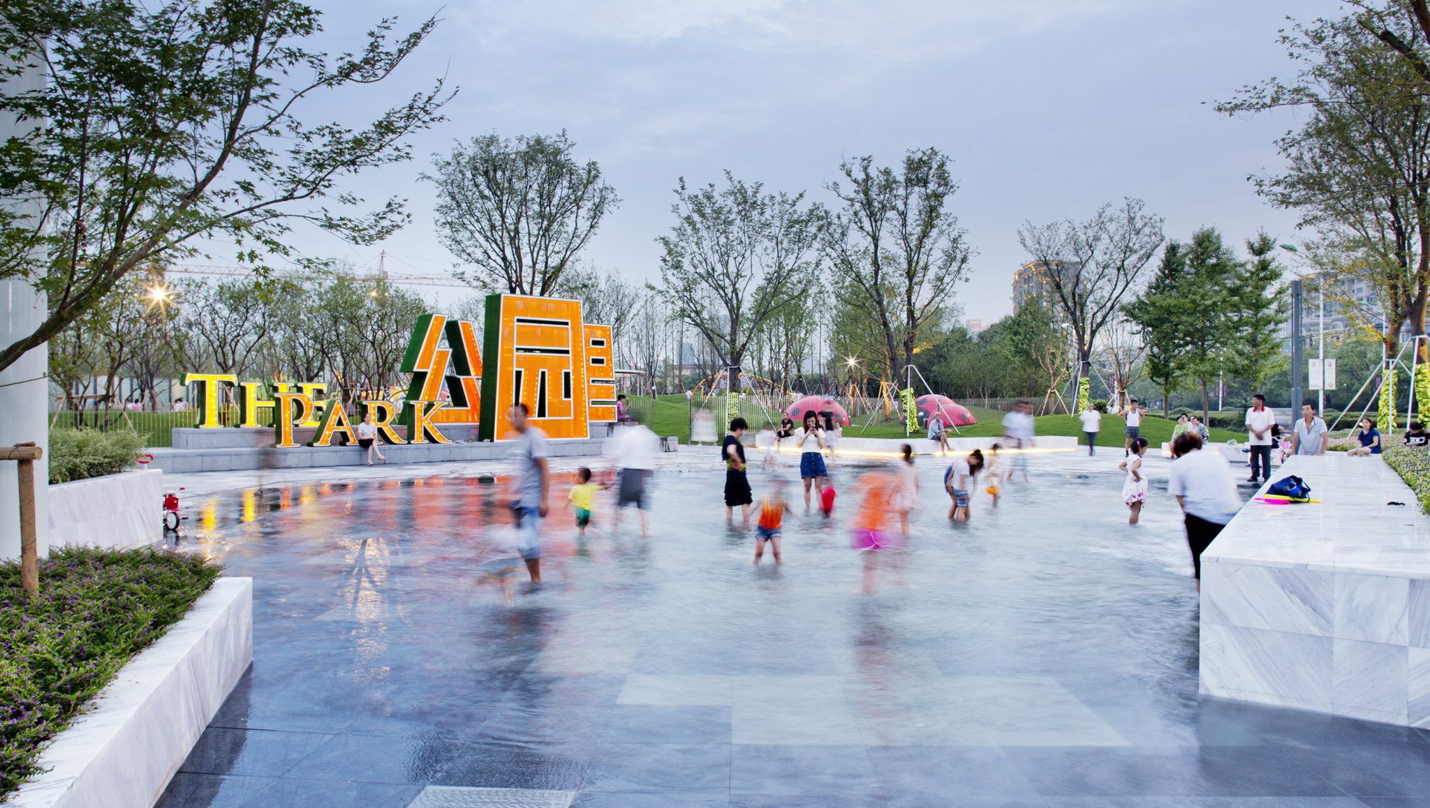 Two interactive wavewater features have been designed in the east & west plazas. The one in the east plaza is quiet and elegant. People could appreciate and touch the wave. The other one in the west plaza is warm and joyful. People could get into the pool and play with the wave.